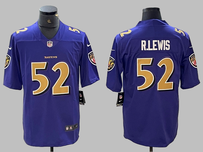 Men's Baltimore Ravens #52 Ray Lewis Vapor Limited NFL Jersey Purple Gold