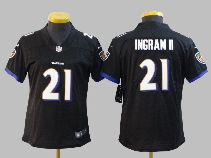 Women's Baltimore Ravens #21 Mark Ingram Stitched Black NFL Jersey
