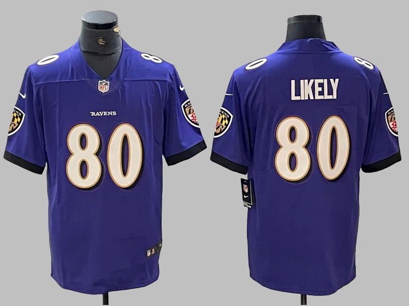 Men's Baltimore Ravens #80 Isaiah Likely Vapor Limited NFL Jersey Purple