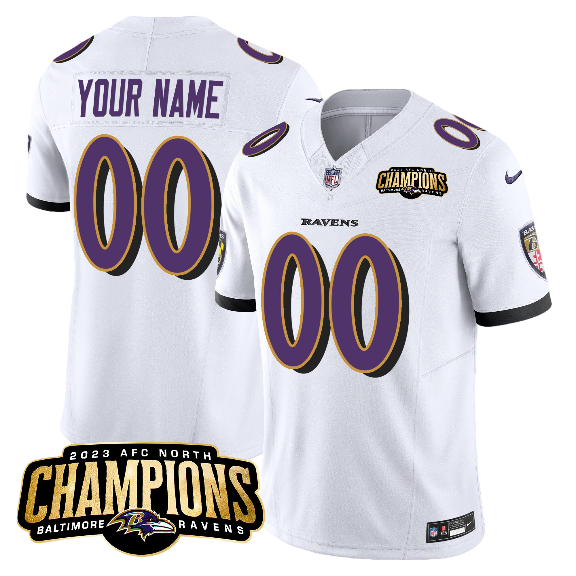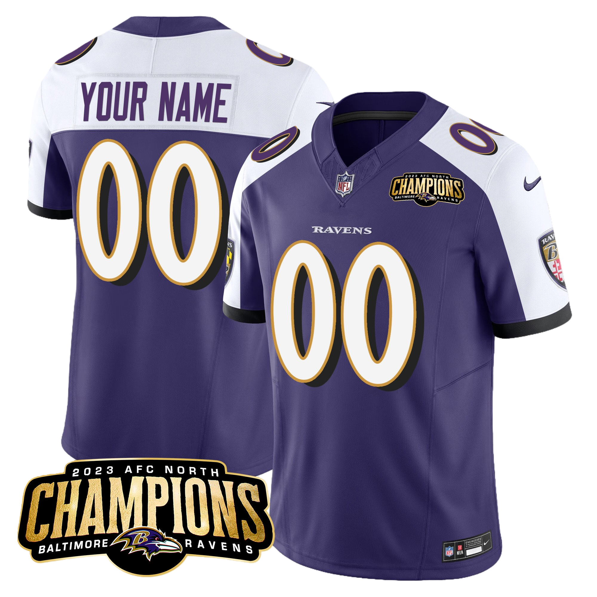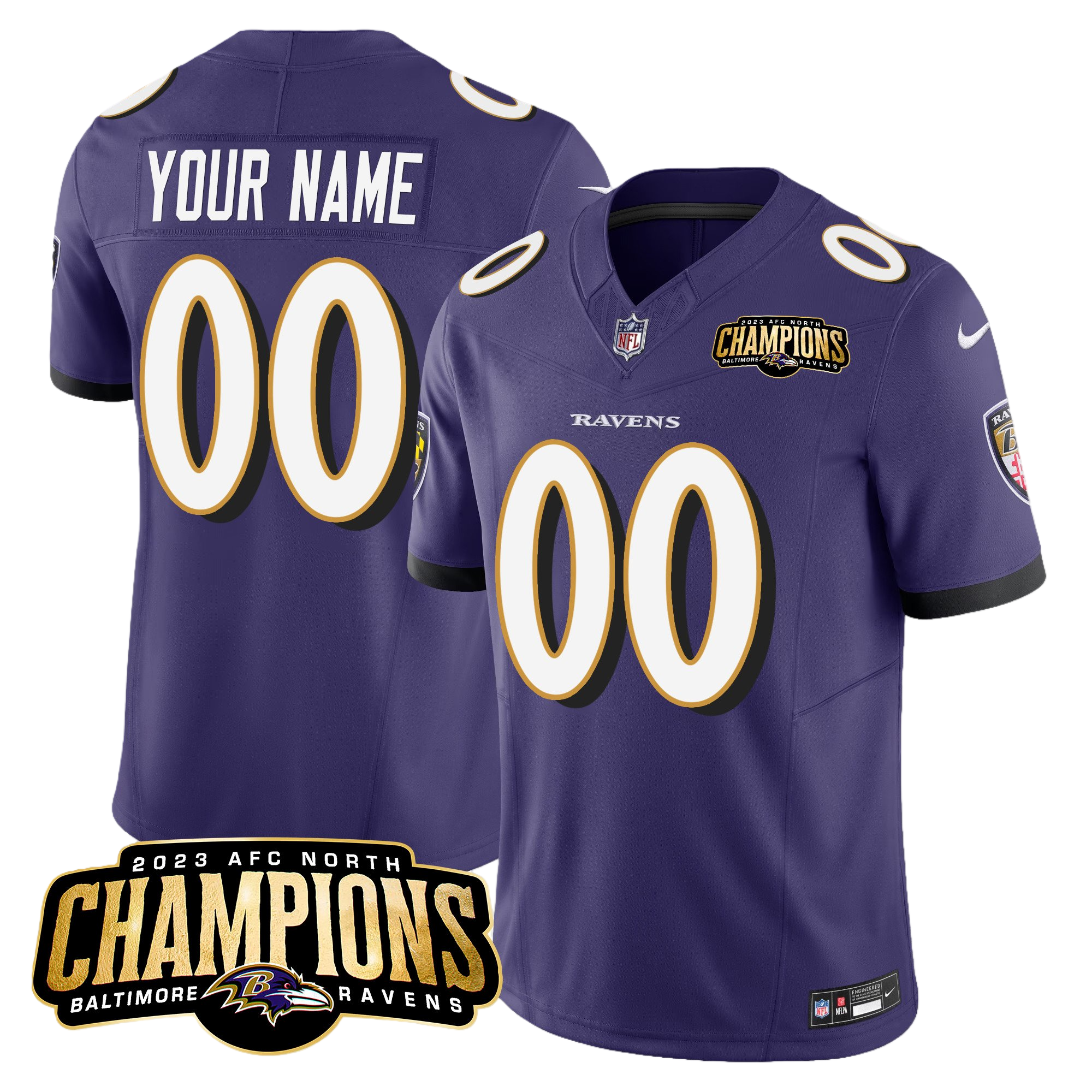Baltimore Ravens 2023 AFC North Champions Patch Vapor Limited Custom Jersey – All Stitched 2