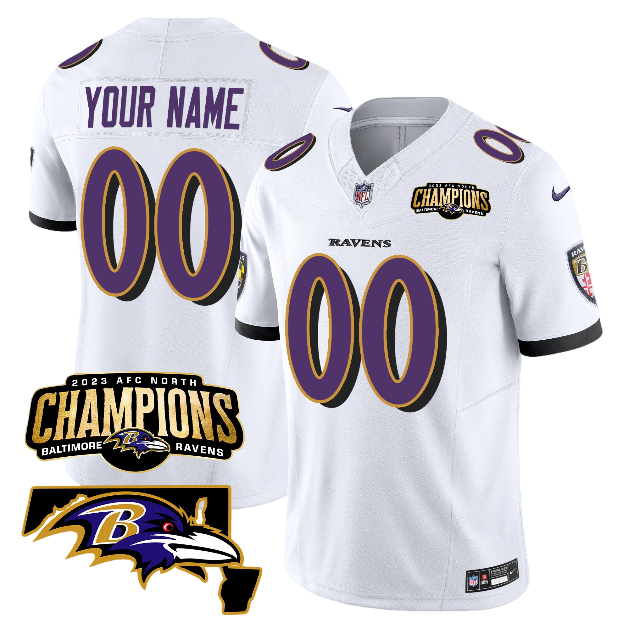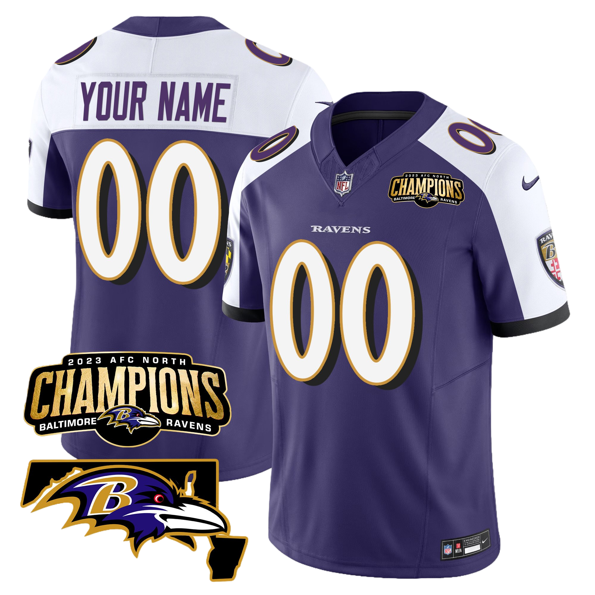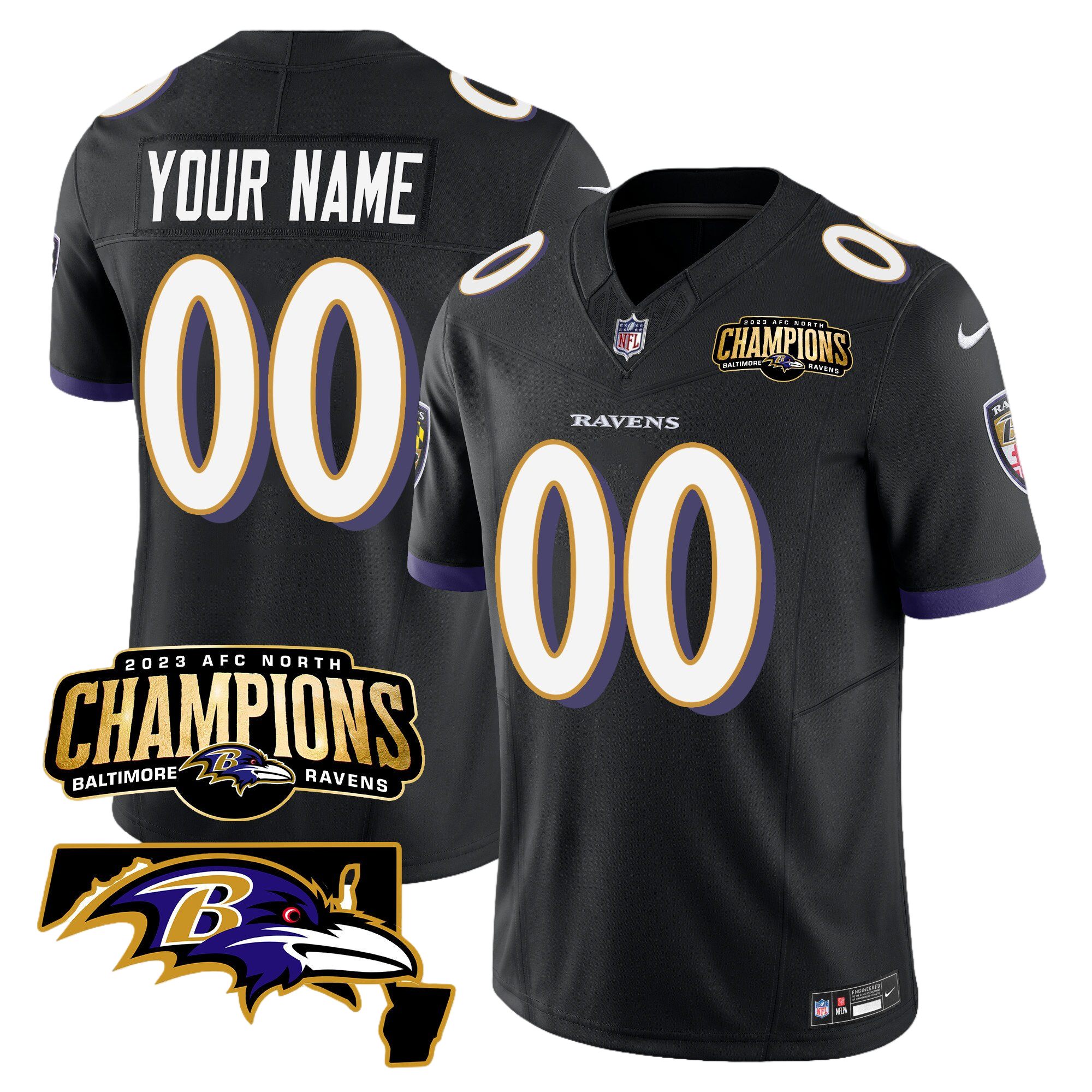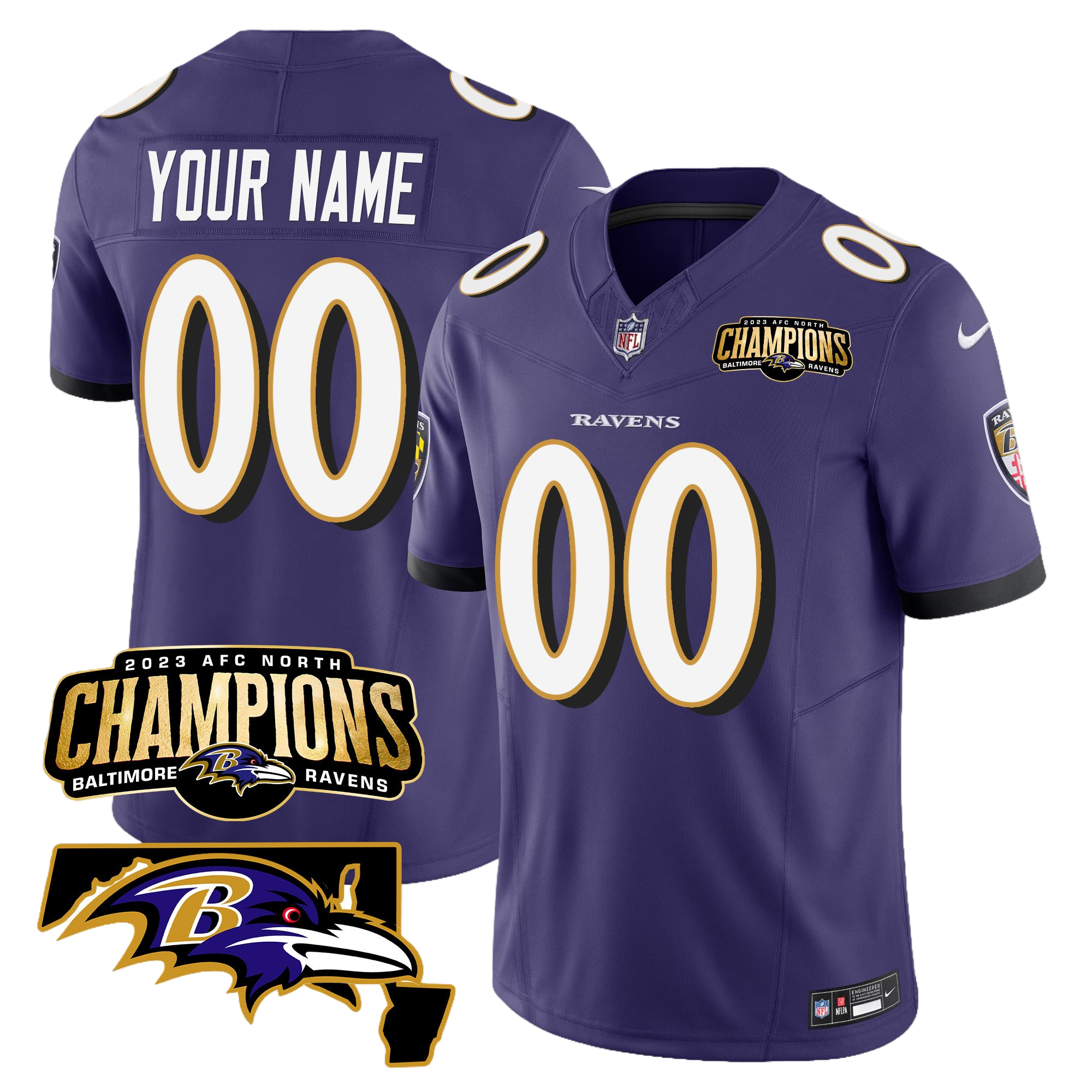 Baltimore Ravens 2023 AFC North Champions & Maryland Patch Vapor Custom Jersey – All Stitched 3