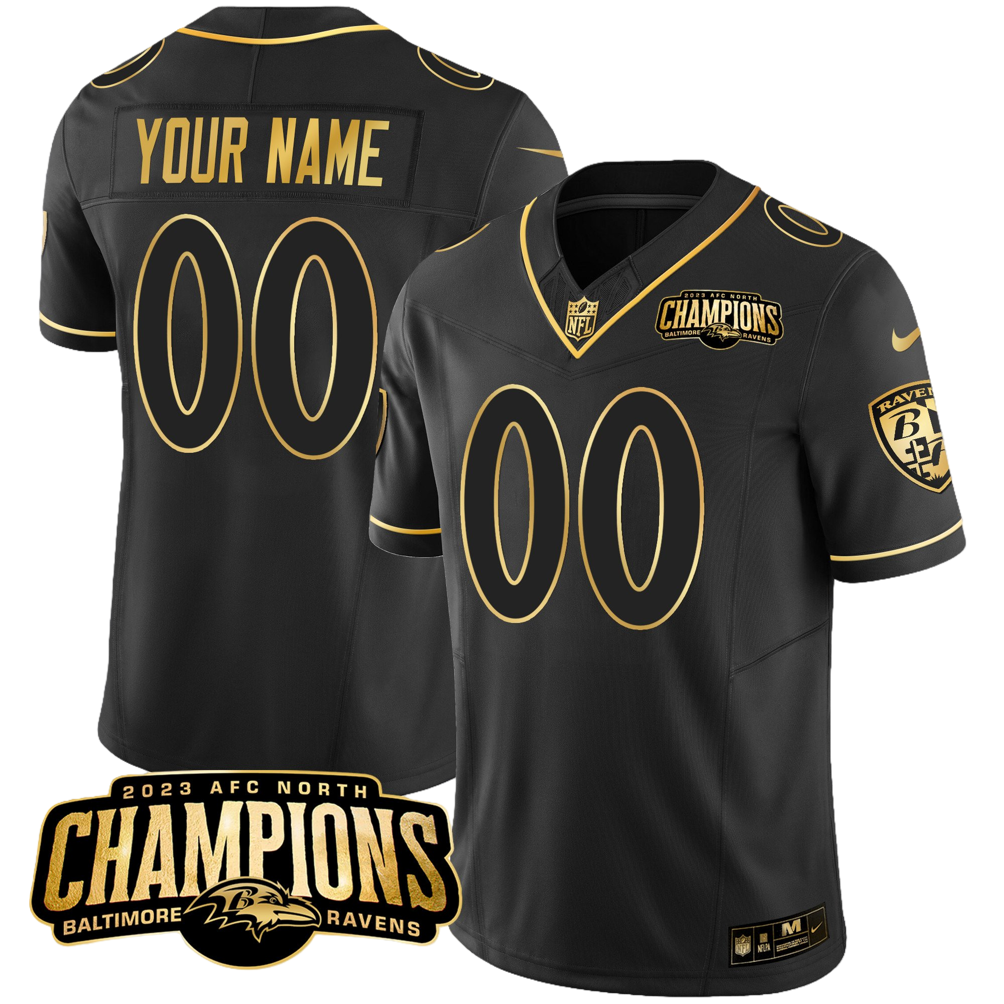 Baltimore Ravens 2023 AFC North Champions Patch Gold Vapor Custom Jersey – All Stitched 3