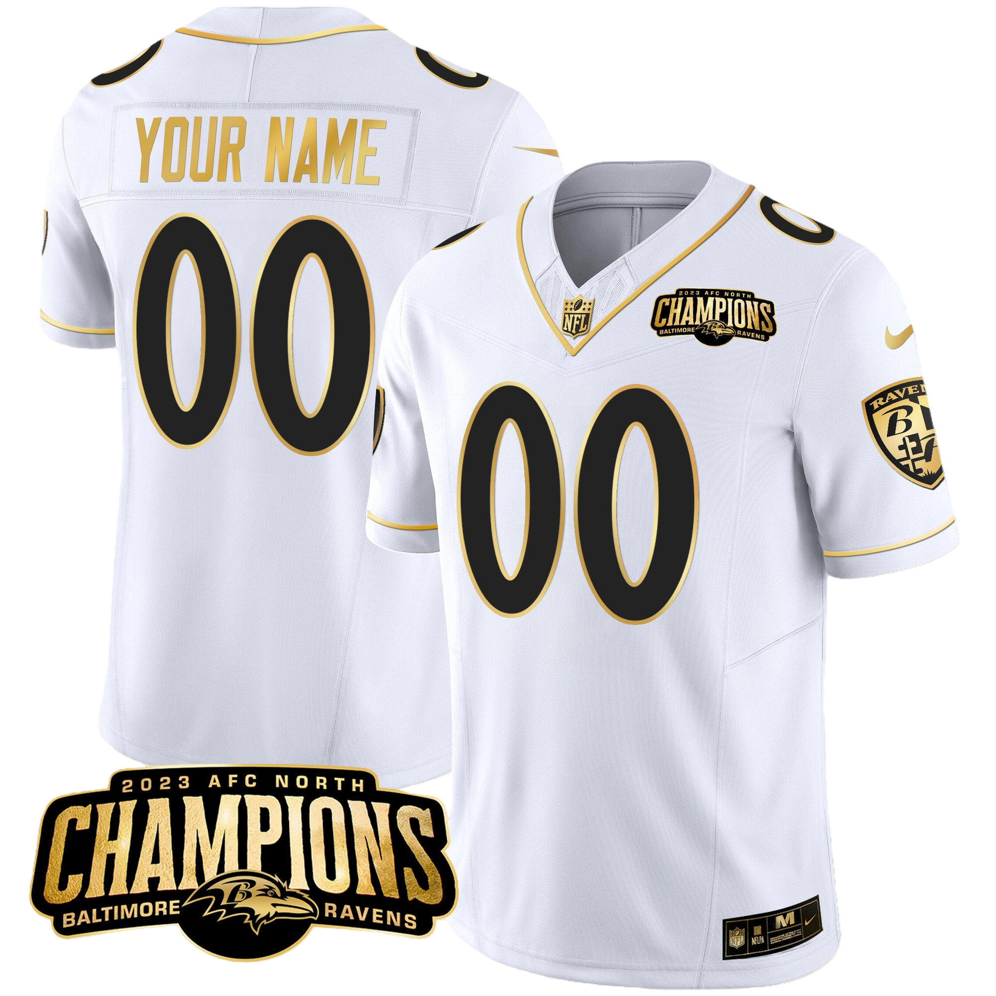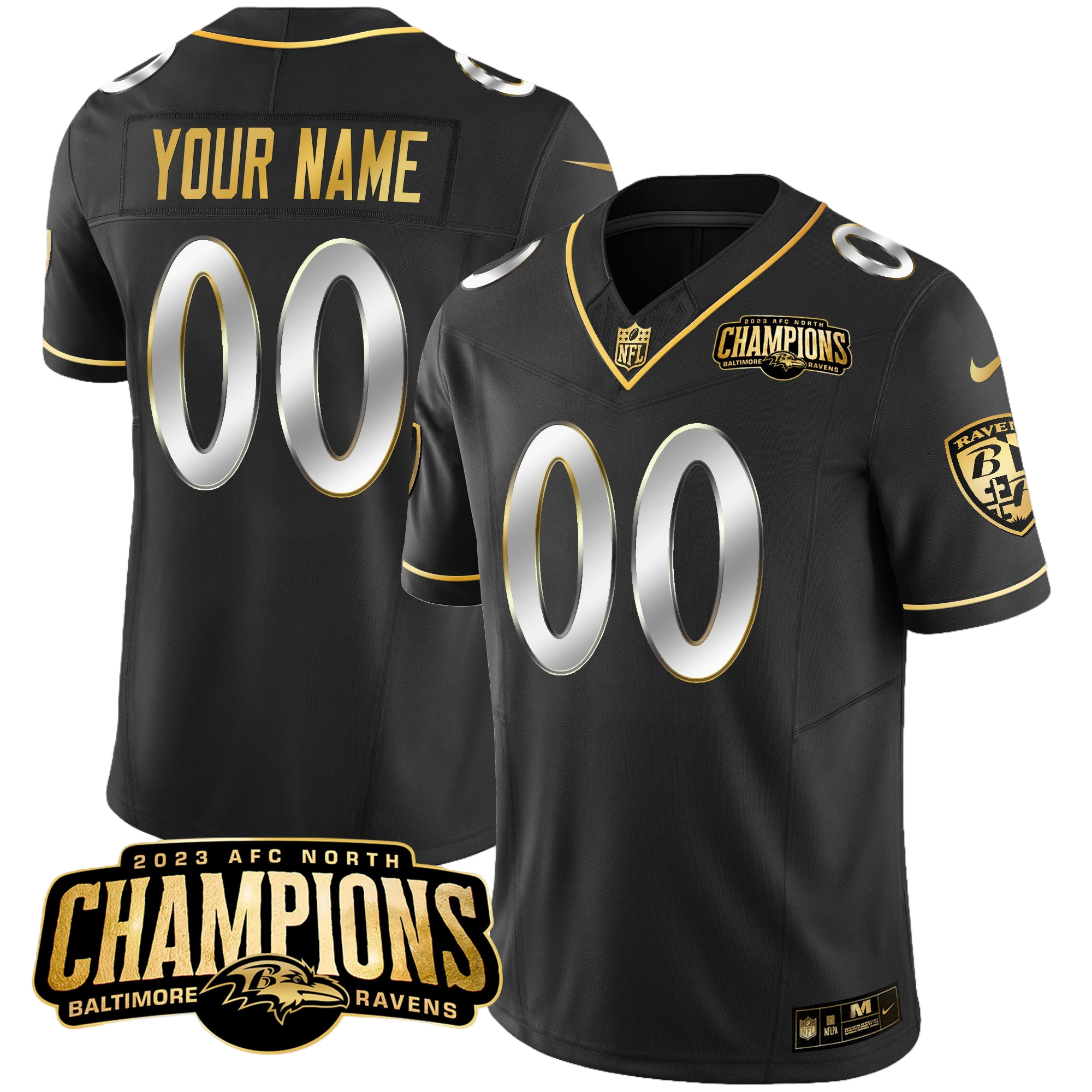 Baltimore Ravens 2023 AFC North Champions Patch Gold Vapor Custom Jersey – All Stitched 2