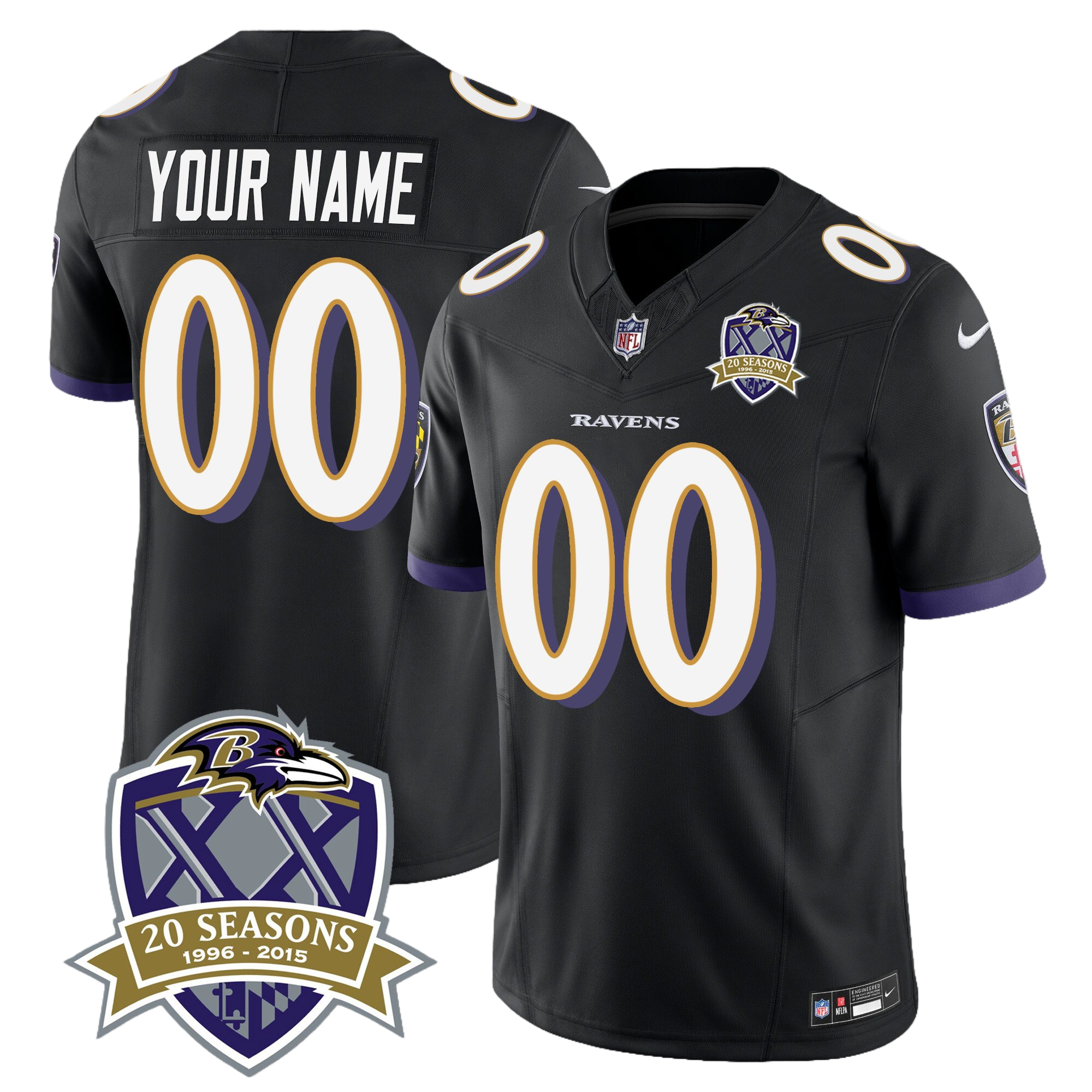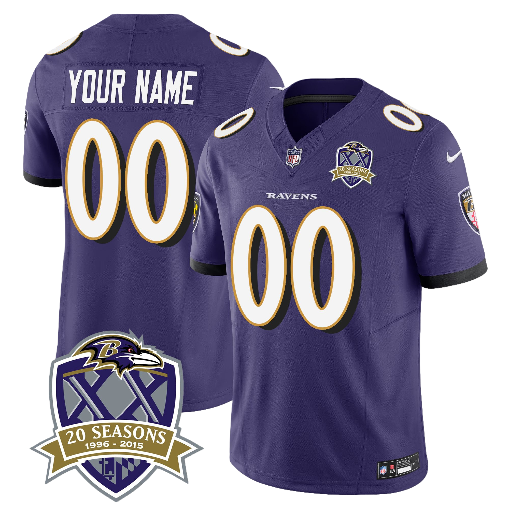 Baltimore Ravens 20th Season Patch Vapor Limited Custom Jersey – All Stitched 2