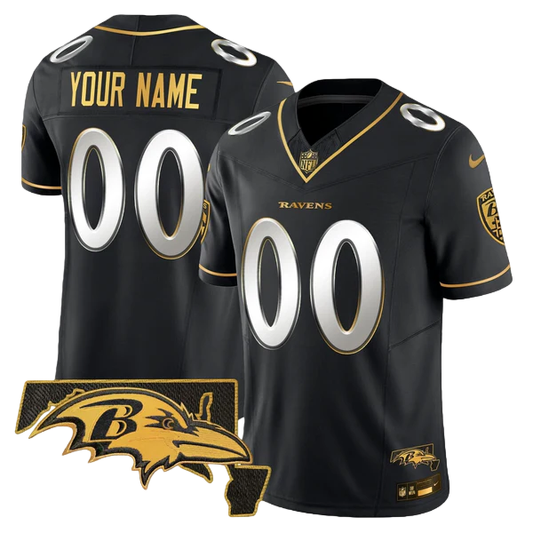 Baltimore Ravens 2023 AFC North Champions & Maryland Patch Gold Vapor Custom Jersey – All Stitched 2