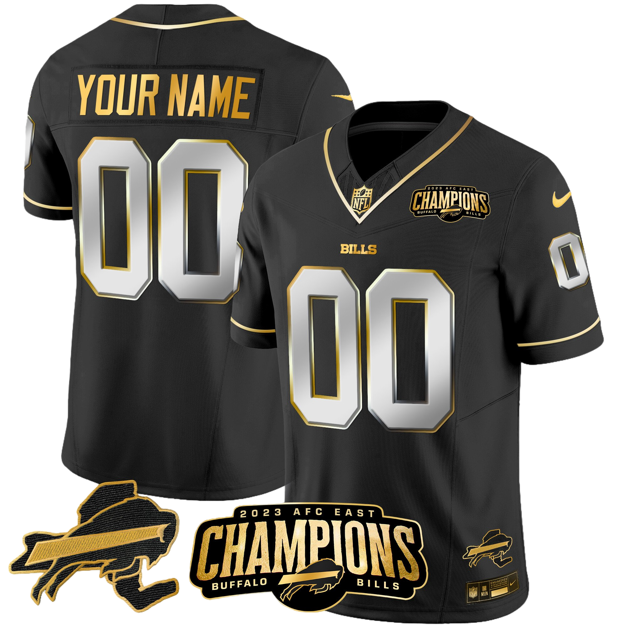 Buffalo Bills 2023 AFC East Champions Patch Gold Vapor Custom Jersey V2 – All Stitched 1