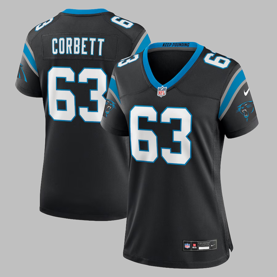 Women's Carolina Panthers #63 Austin Corbett All Stitched NFL Black Jersey