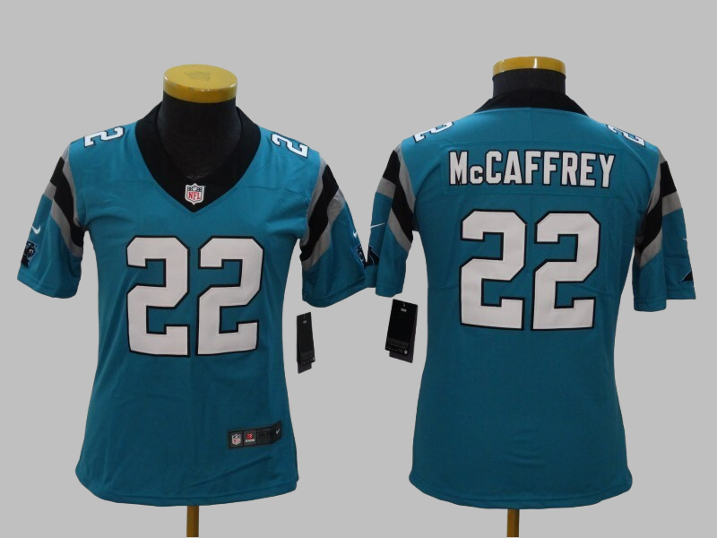 Women's Carolina Panthers #22 Christian McCaffrey All Stitched NFL Blue Jersey CP0005