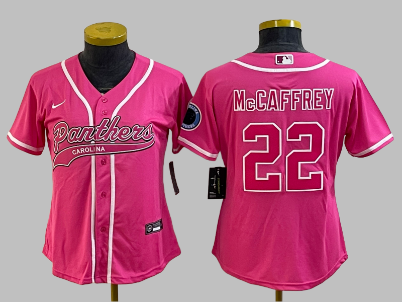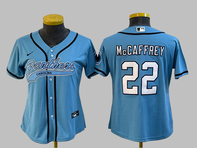 Women's Carolina Panthers #22 Christian McCaffrey All Stitched NFL x MLB Jersey CP0007