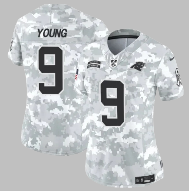 Women's Carolina Panthers #9 Bryce Young All Stitched NFL Camo Salute To Service Limited Jersey