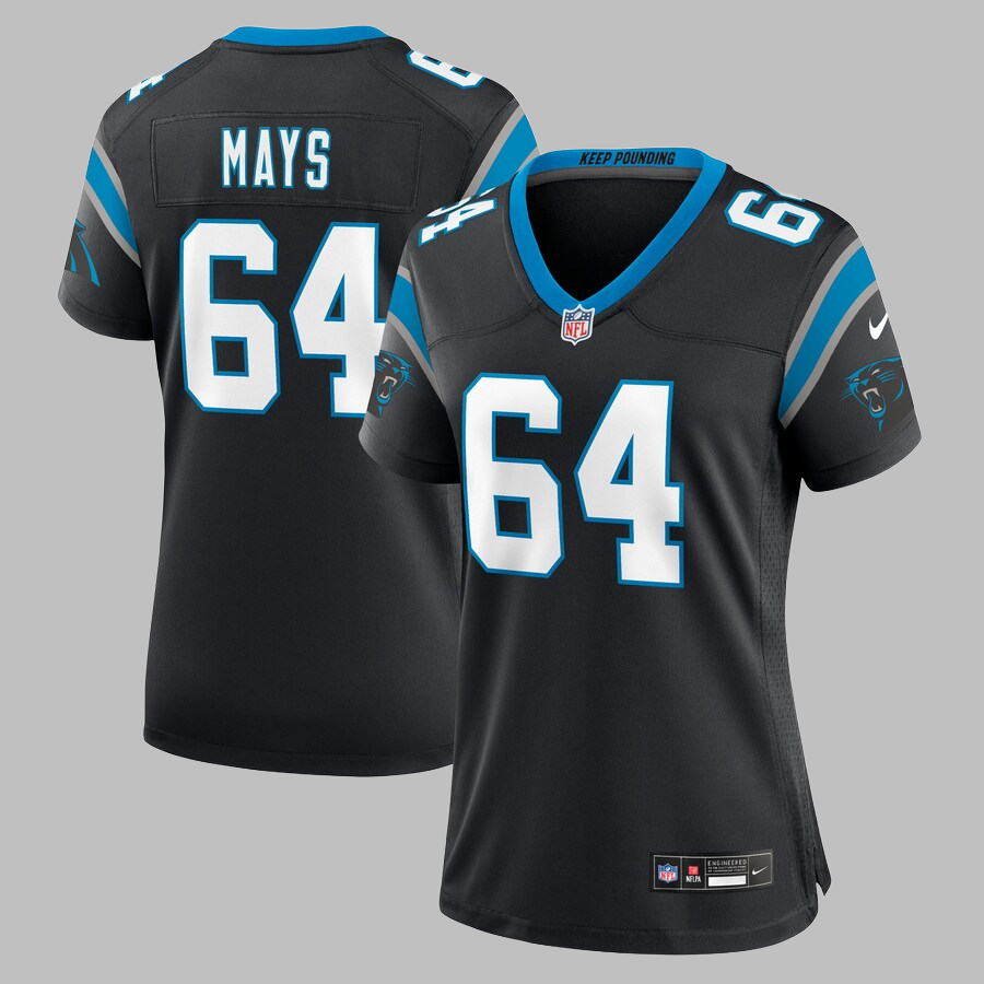 Women's Carolina Panthers #64 Cade Mays All Stitched NFL Black Jersey