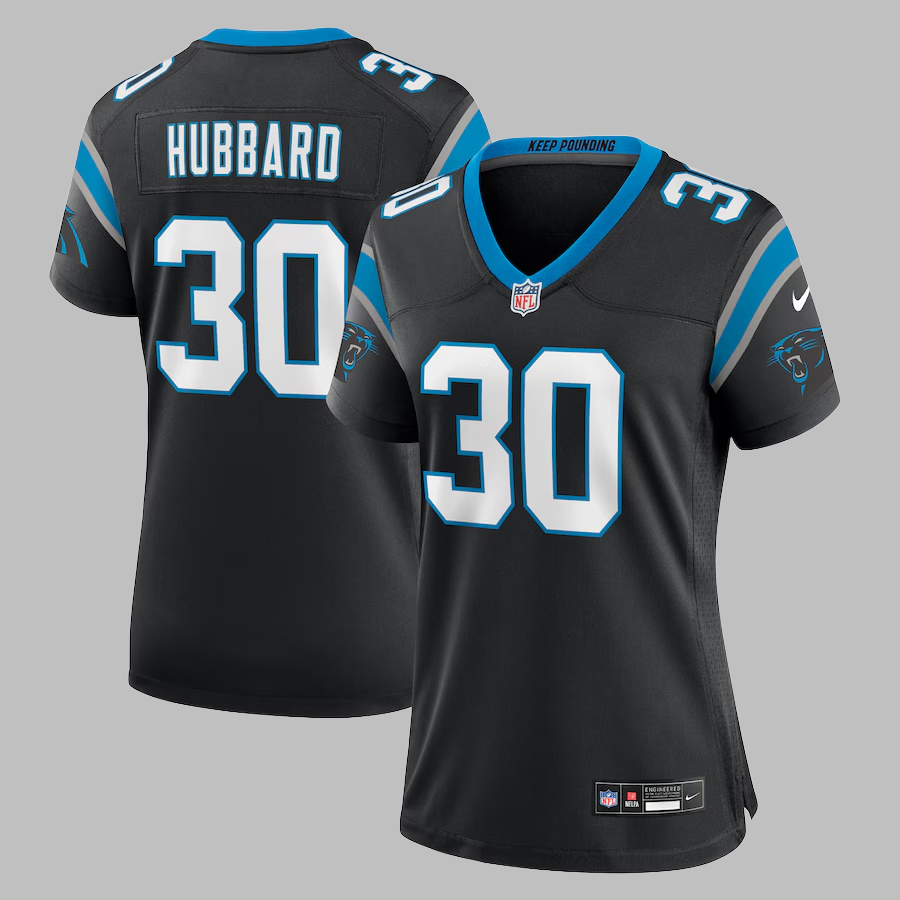 Women's Carolina Panthers #30 Chuba Hubbard All Stitched NFL Black Jersey