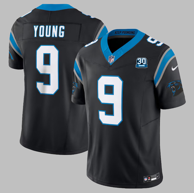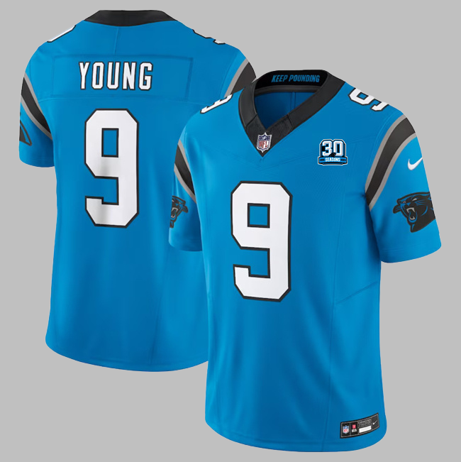 Men's Carolina Panthers #9 Bryce Young All Stitched Blue Vapor F.U.S.E. Limited NFL Jersey With 30th Patch