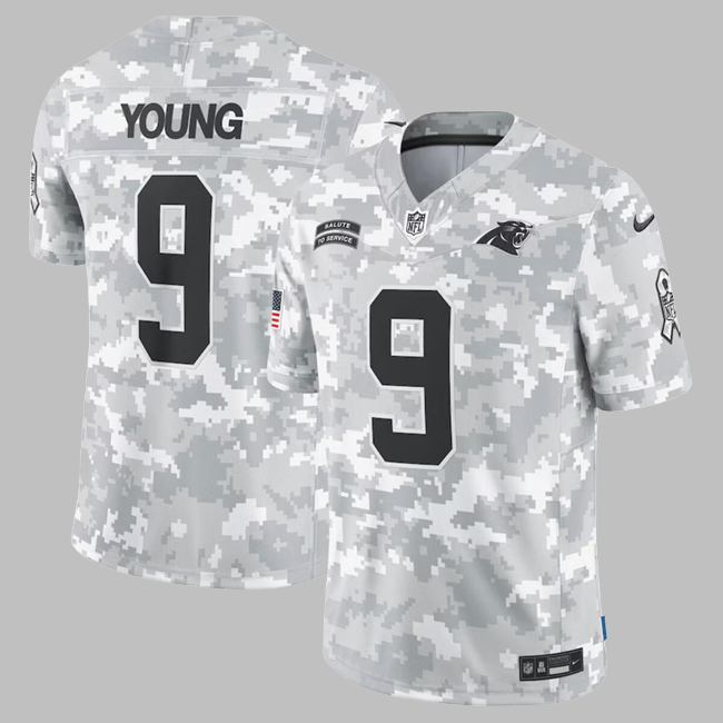 Men's Carolina Panthers #9 Bryce Young All Stitched Camo Salute To Service Limited NFL Jersey
