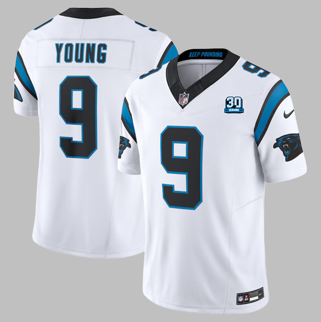 Men's Carolina Panthers #9 Bryce Young All Stitched White Vapor F.U.S.E. Limited NFL Jersey With 30th Patch