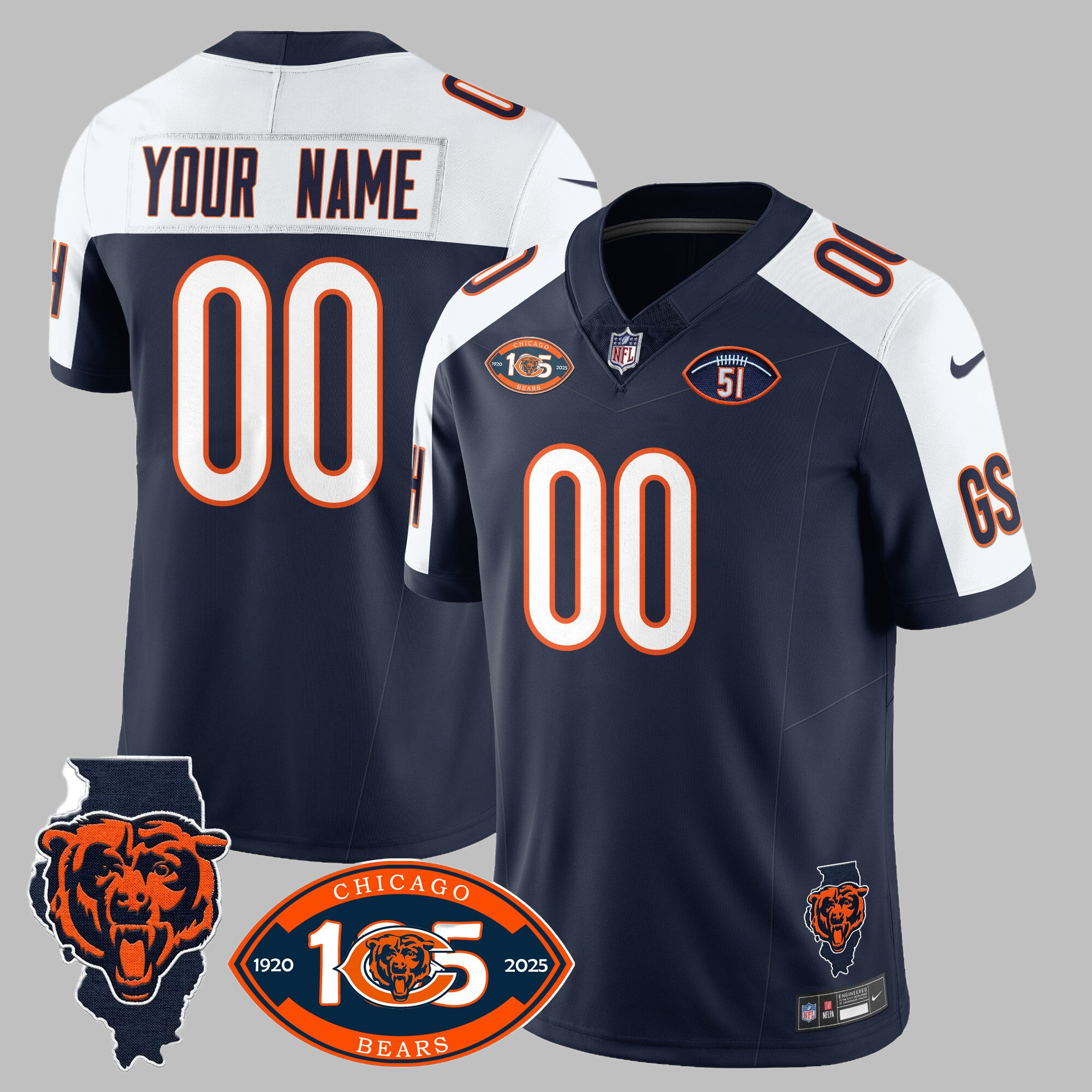 Chicago Bears All Stitched Custom NFL Limited Jersey Navy White - Men's & Women's & Youth & Toddler