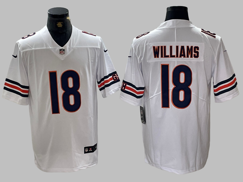 Men's Chicago Bears #18 Caleb Williams Stitched White Vapor Limited NFL Jersey