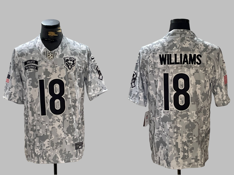Men's Chicago Bears #18 Caleb Williams Stitched Camo Salute To Service Limited NFL Jersey