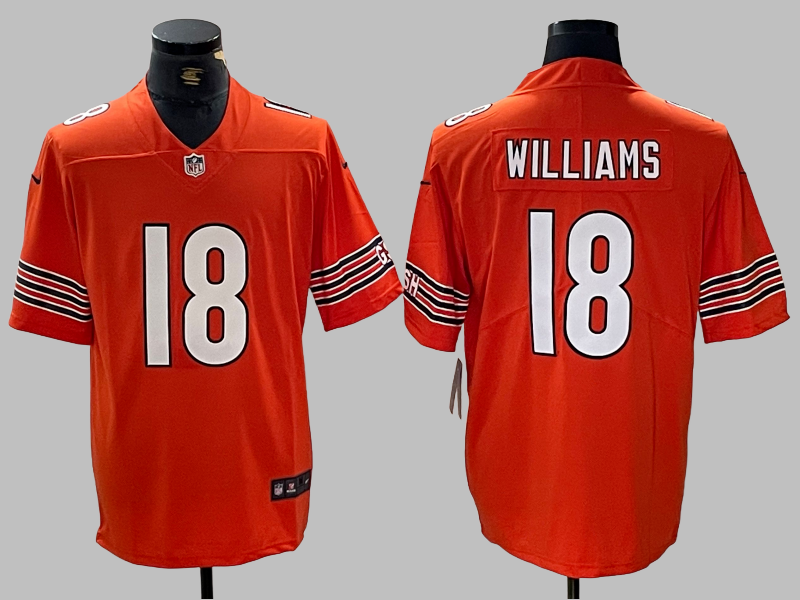 Men's Chicago Bears #18 Caleb Williams Stitched Vapor Limited NFL Jersey Orange