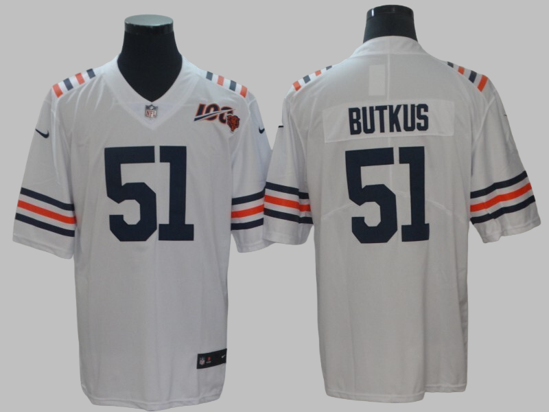 Men's Chicago Bears #51 Dick Butkus Stitched 100th White Limited NFL Jersey