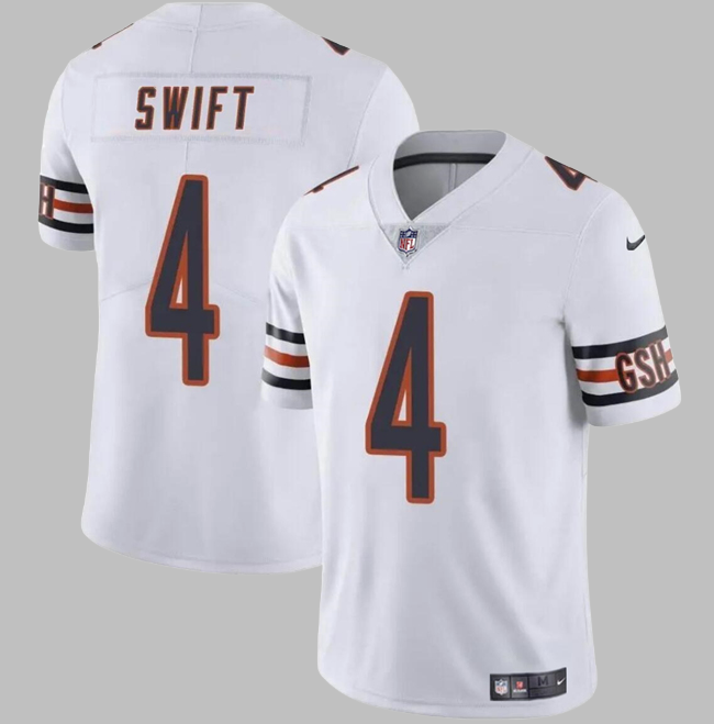 Men's Chicago Bears #4 D'Andre Swift Stitched Vapor Limited NFL Jersey White