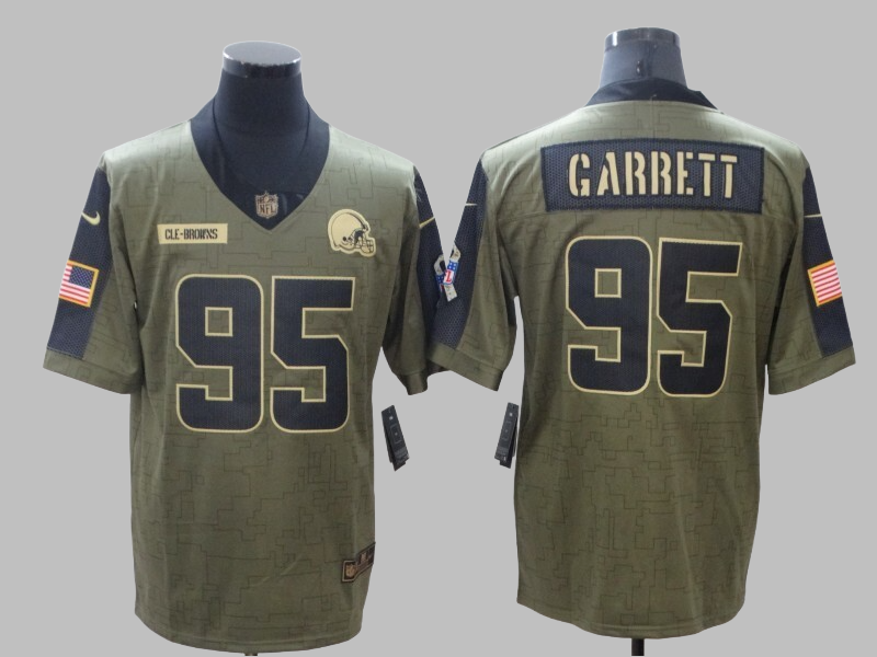 Men's Cleveland Browns #95 Myles Garrett Stitched Olive Salute To Service Limited NFL Jersey