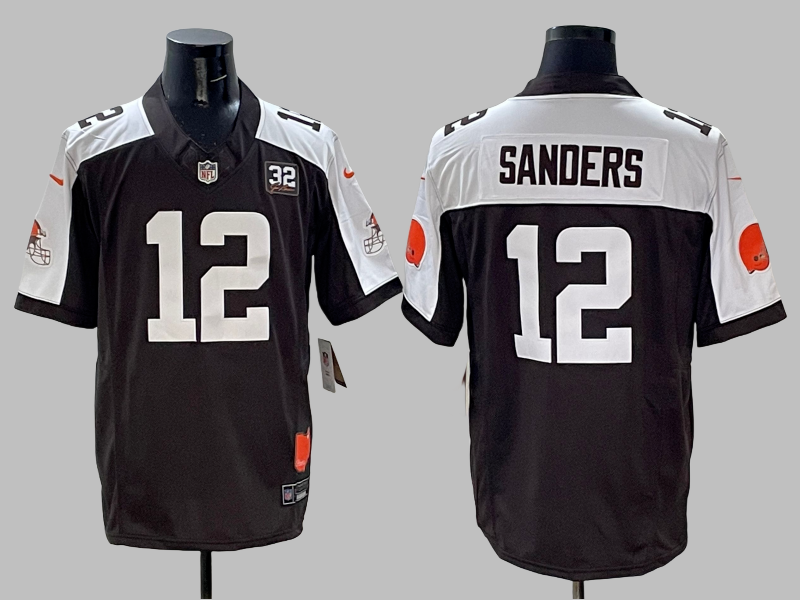 Men's Cleveland Browns #12 Shedeur Sanders Stitched 32 Patch Brown White Vapor F.U.S.E. Limited NFL Jersey