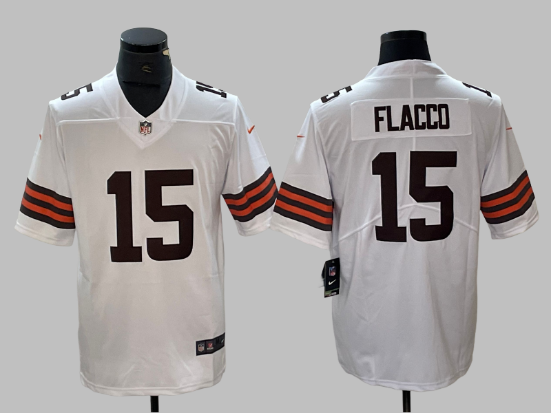Men's Cleveland Browns #15 Joe Flacco Stitched White Vapor Untouchable Limited NFL Jersey