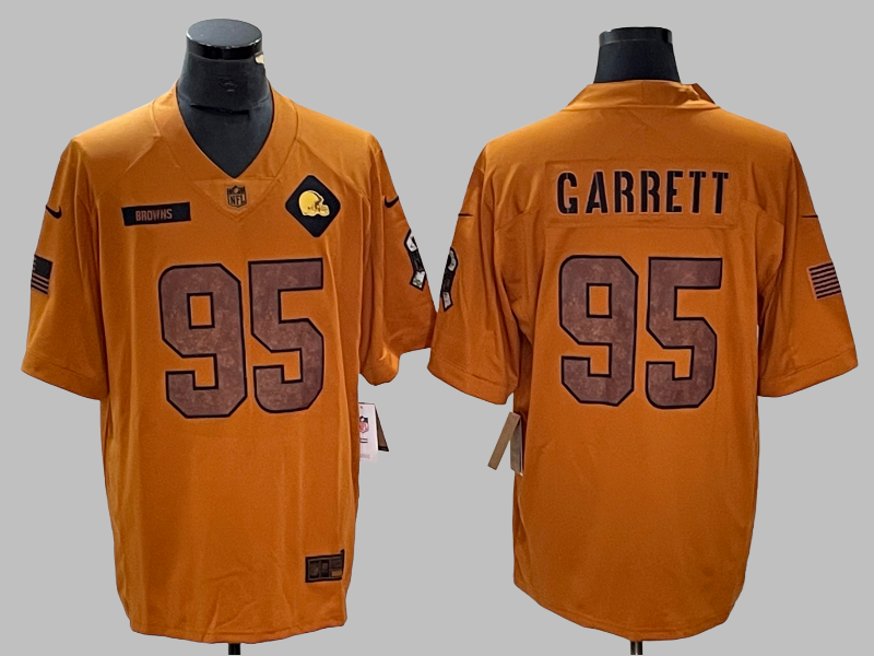 Men's Cleveland Browns #95 Myles Garrett Stitched Brown Salute To Service Limited NFL Jersey