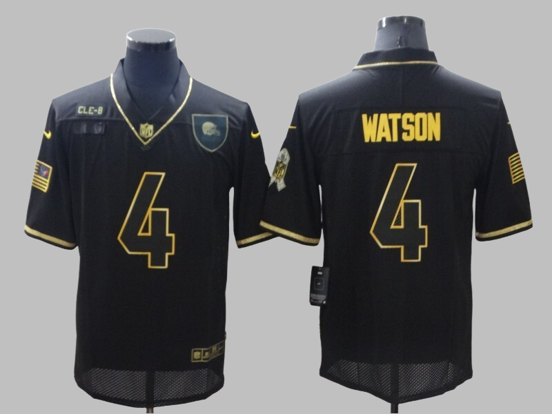 Men's Cleveland Browns #4 Deshaun Watson Stitched Black Gold Limited NFL Jersey