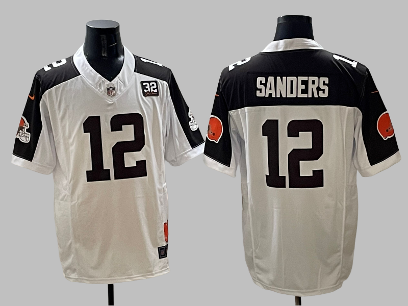 Men's Cleveland Browns #12 Shedeur Sanders Stitched 32 Patch White Vapor F.U.S.E. Limited NFL Jersey