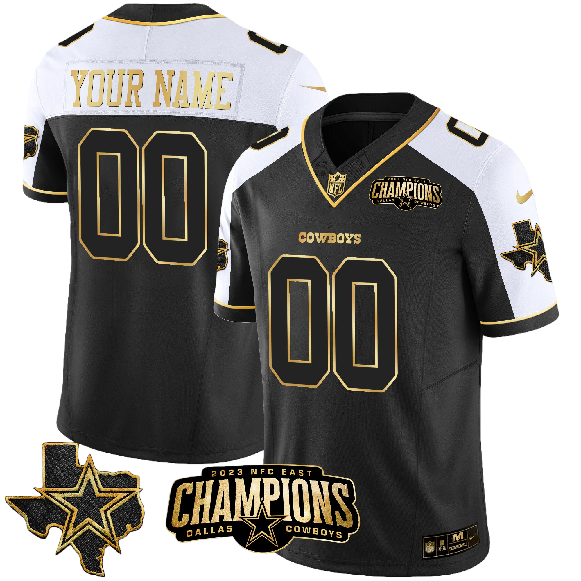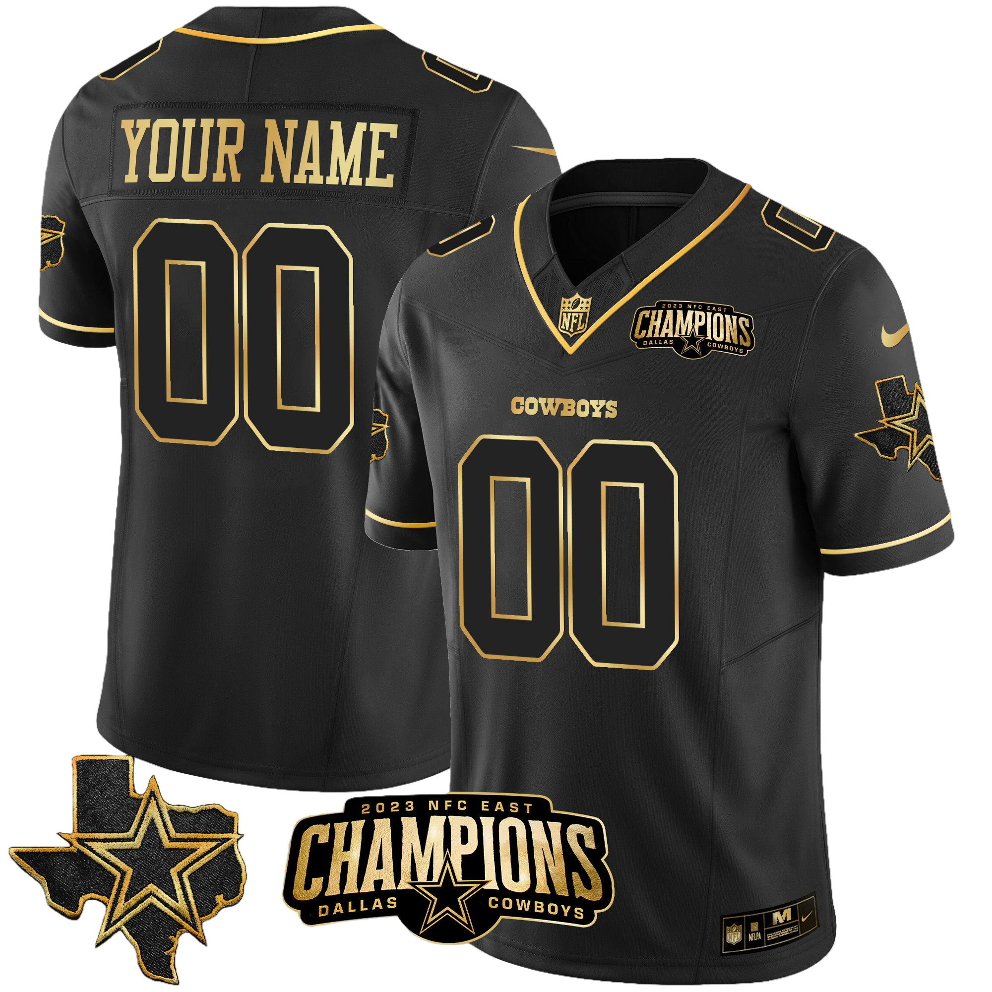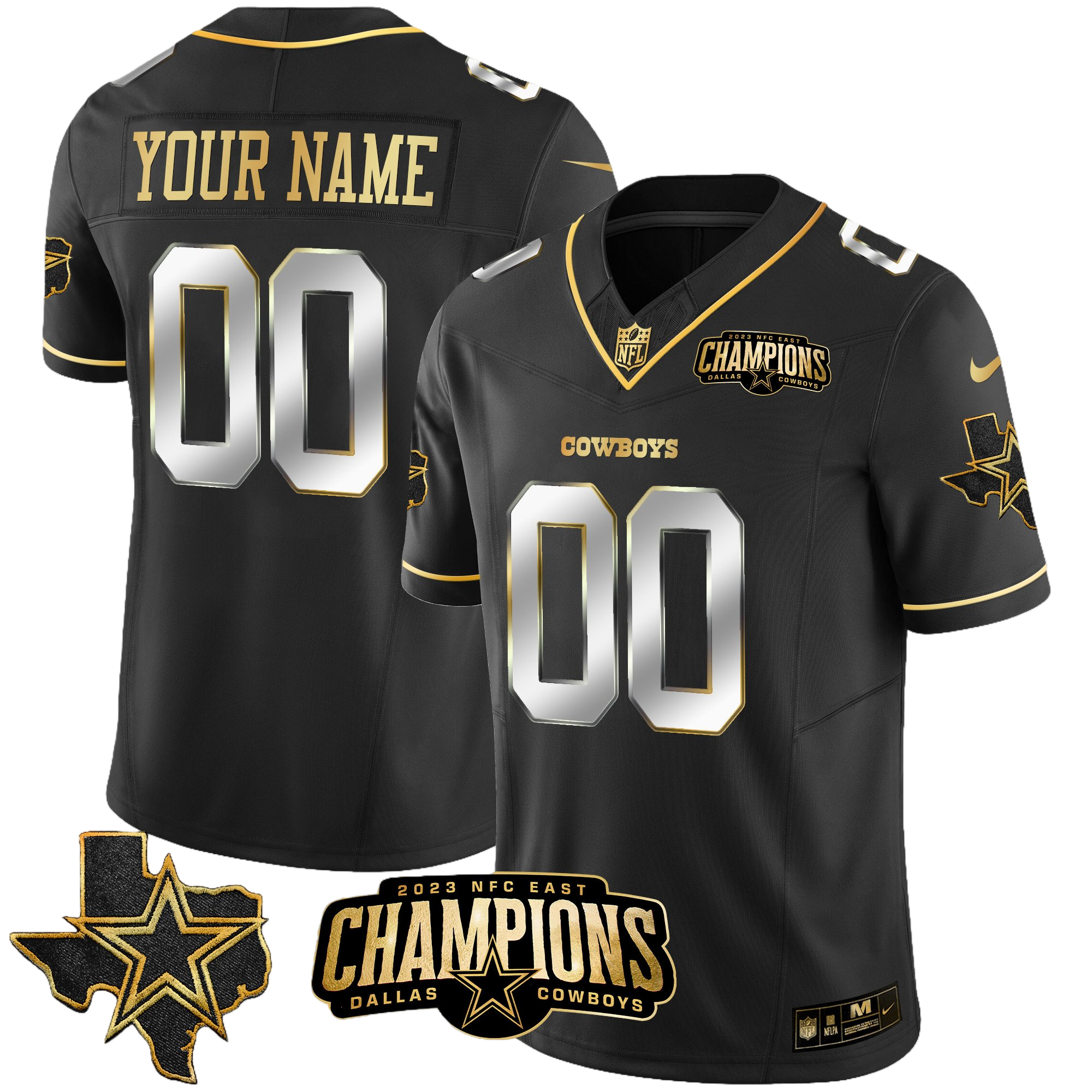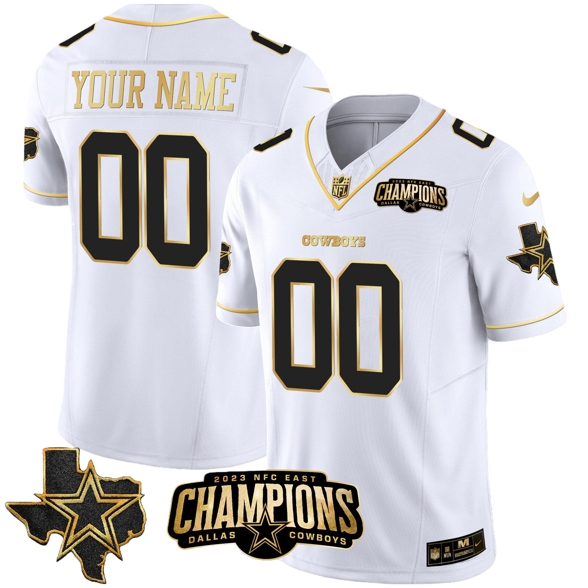 Dallas Cowboys 2023 NFC East Champions Patch Gold Vapor Custom Jersey – All Stitched 2