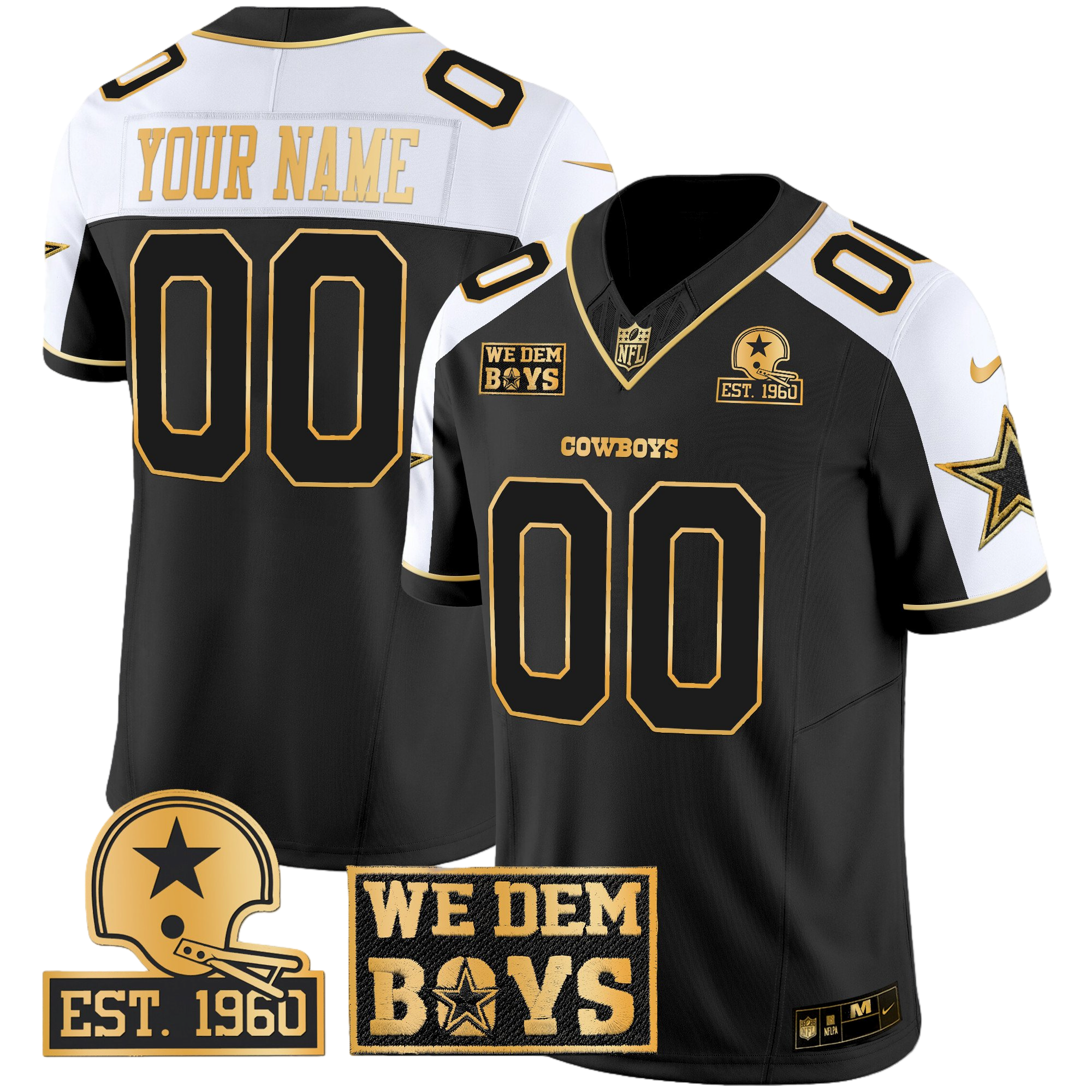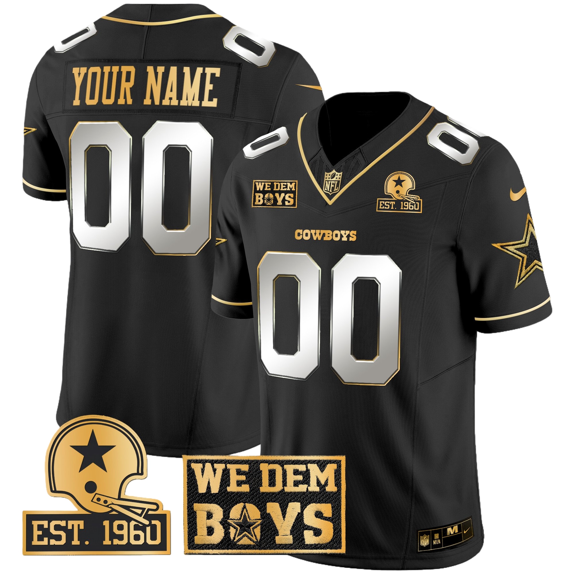 Dallas Cowboys Est. 1960 & We Dem Boyz Patch Gold Vapor Limited Custom Jersey V2 – All Stitched 1