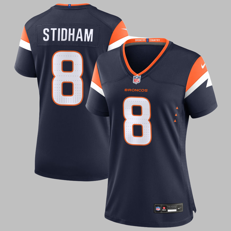 Women's Denver Broncos #8 Jarrett Stidham All Stitched NFL Navy Mile High Collection Jersey