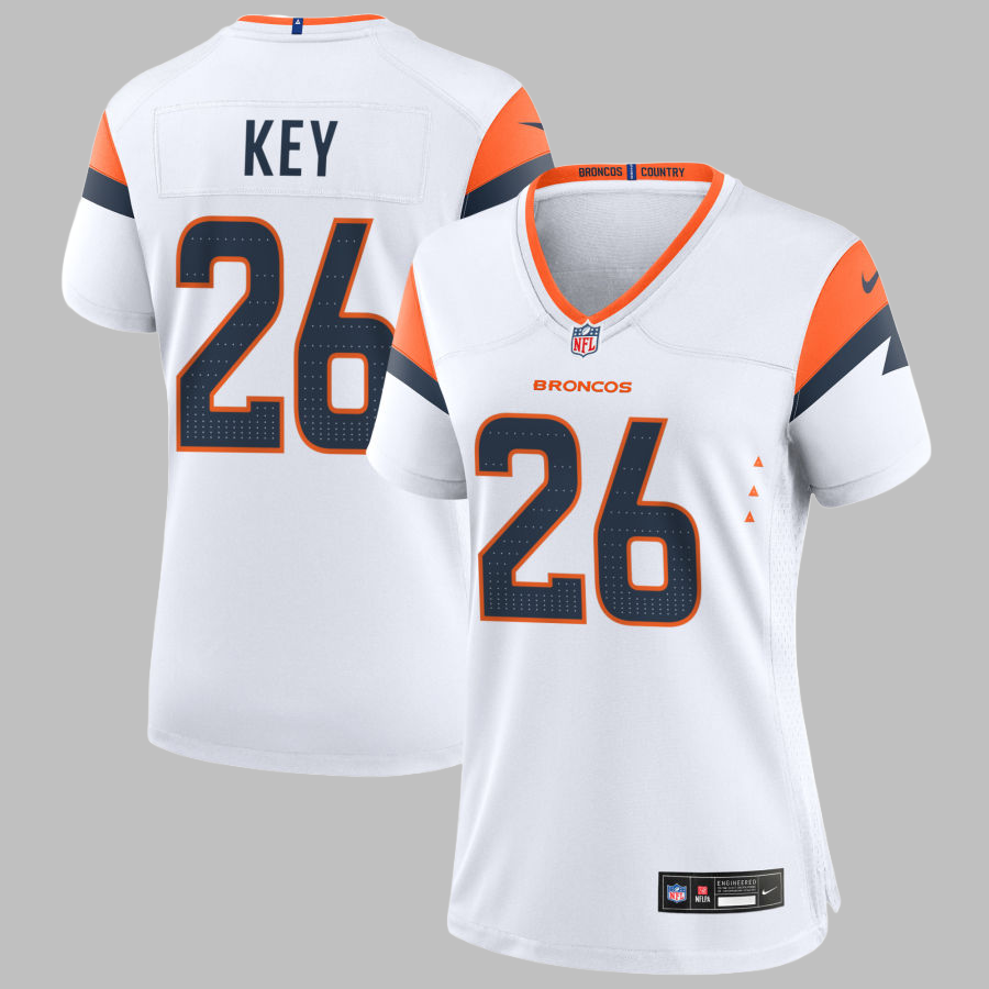 Women's Denver Broncos #26 Devon Key All Stitched NFL White Mile High Collection Jersey
