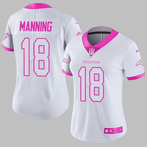 Women's Denver Broncos #18 Peyton Manning White Pink All Stitched NFL Jersey