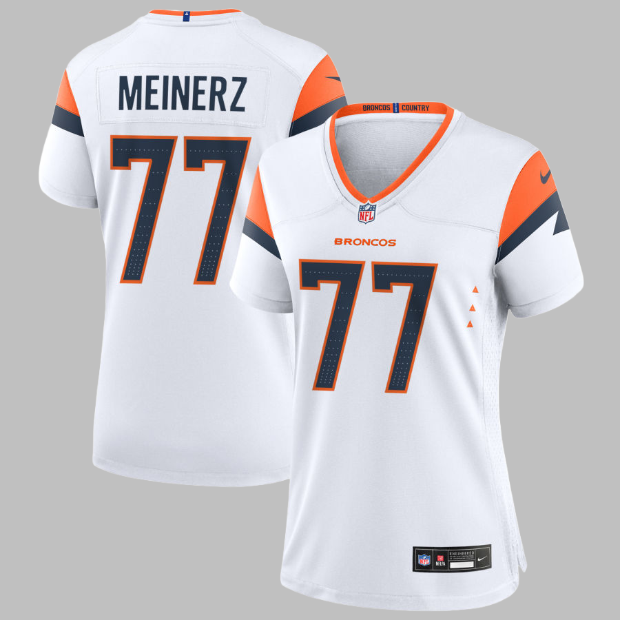 Women's Denver Broncos #77 Quinn Meinerz All Stitched NFL White Mile High Collection Jersey