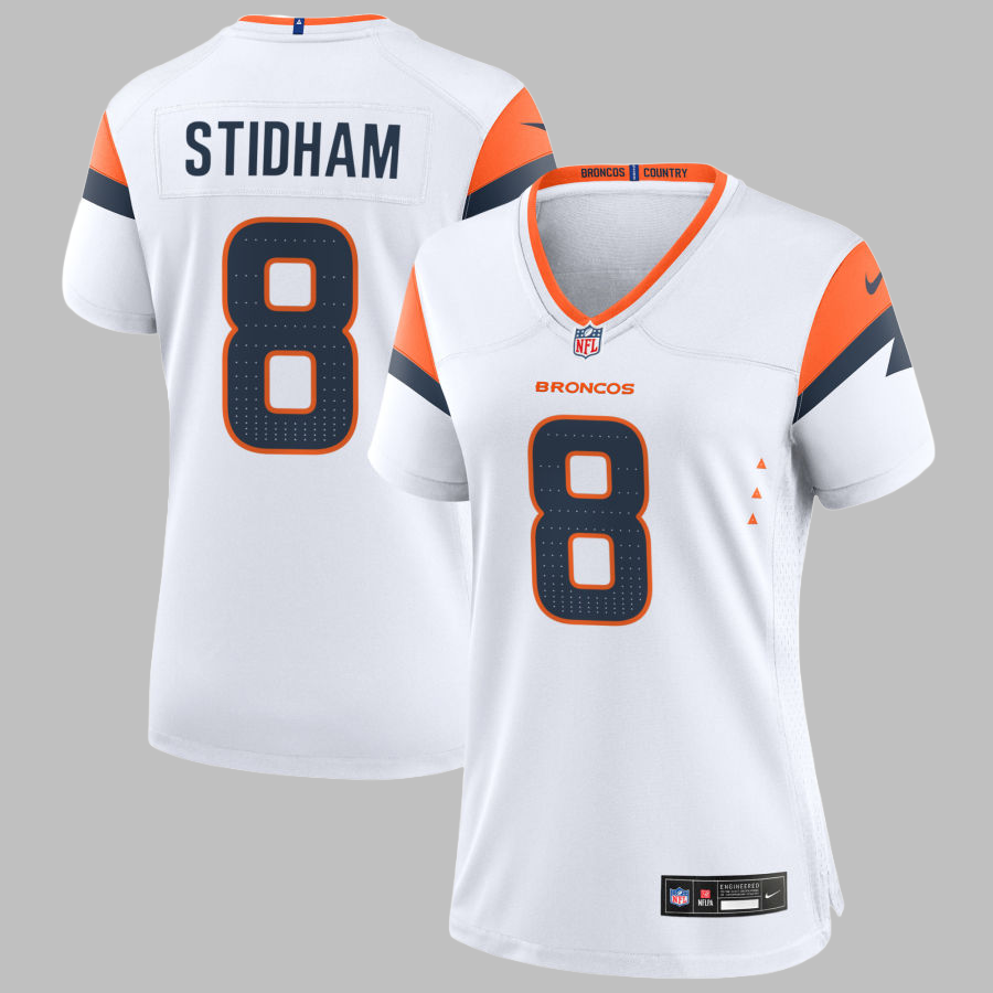Women's Denver Broncos #8 Jarrett Stidham All Stitched NFL White Mile High Collection Jersey