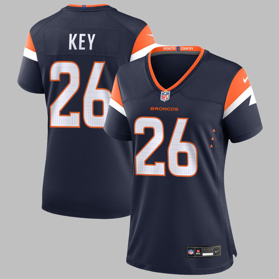 Women's Denver Broncos #26 Devon Key All Stitched NFL Navy Mile High Collection Jersey
