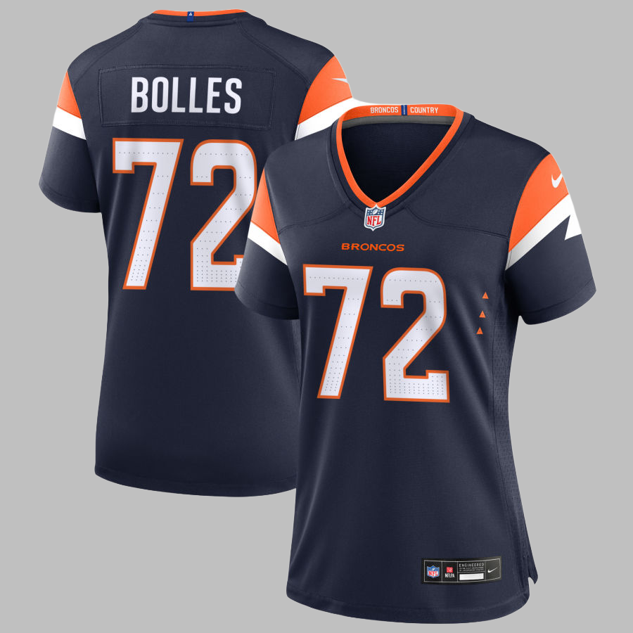Women's Denver Broncos #72 Garett Bolles All Stitched NFL Navy Mile High Collection Jersey