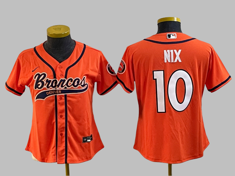 Women's Denver Broncos #10 Bo Nix All Stitched NFL x MLB Jersey DB0004