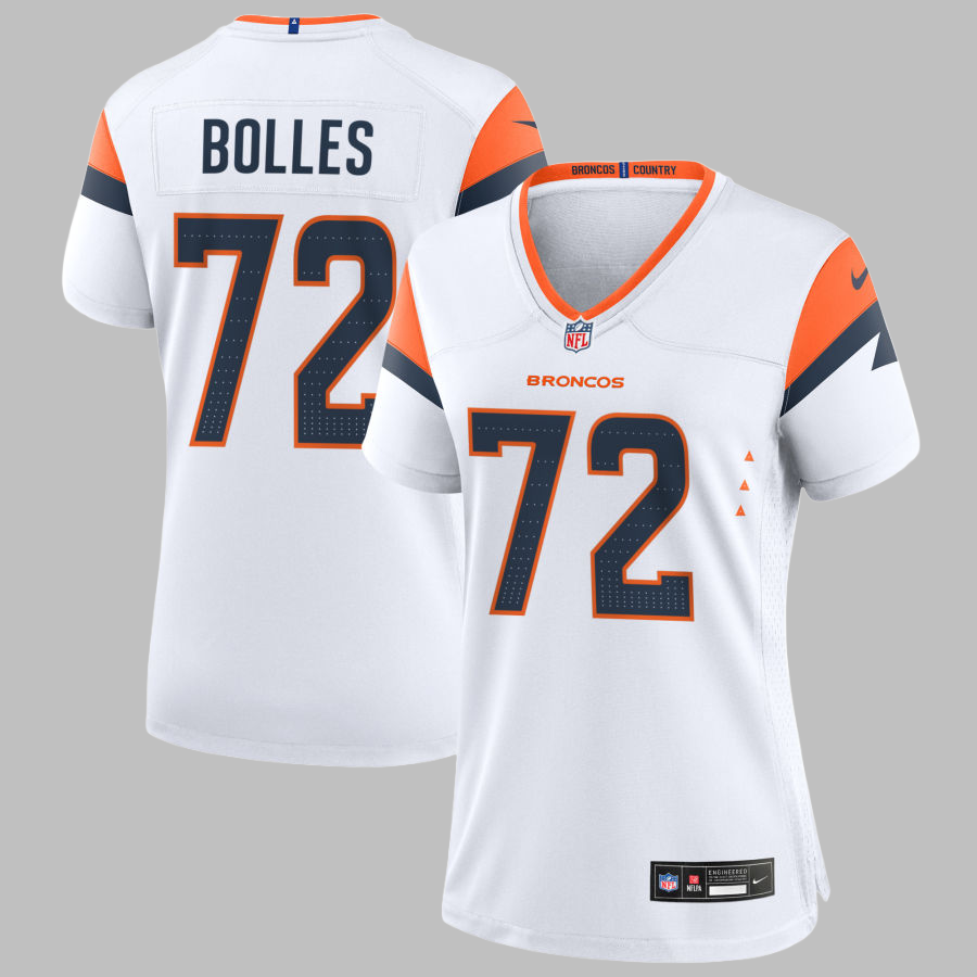 Women's Denver Broncos #72 Garett Bolles All Stitched NFL White Mile High Collection Jersey