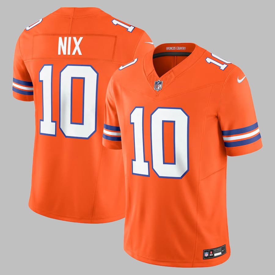Men's Denver Broncos #10 Bo Nix All Stitched NFL Orange Vapor F.U.S.E. Limited Jersey