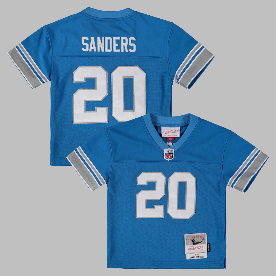 Youth Mitchell & Ness #20 Barry Sanders Blue Detroit Lions 1996 Retired Legacy Jersey