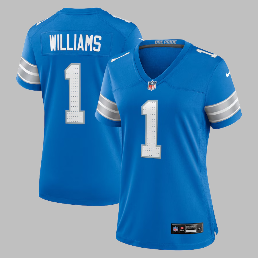 Women's Detroit Lions #1 Jameson Williams All Stitched NFL Blue Jersey