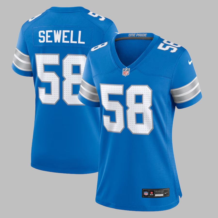 Women's Detroit Lions #58 Penei Sewell All Stitched NFL Blue Jersey