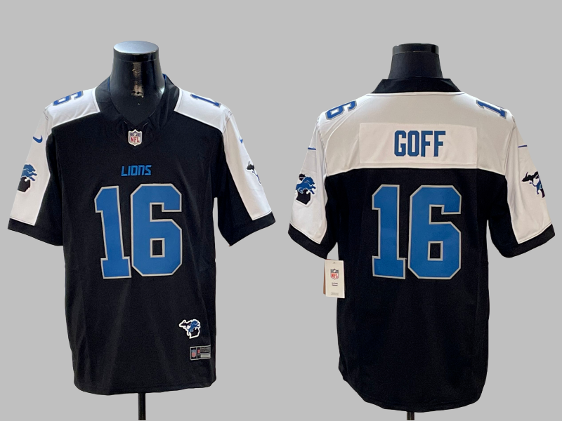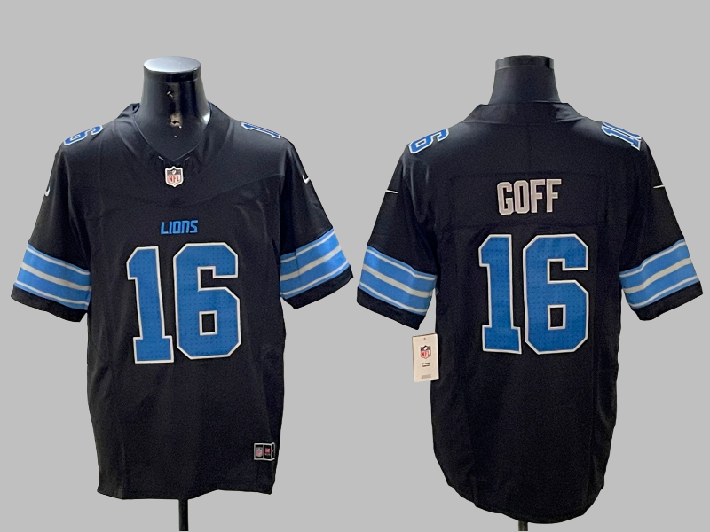 Men's Detroit Lions #16 Jared Goff Stitched Vapor F.U.S.E. Limited NFL Jersey Black White