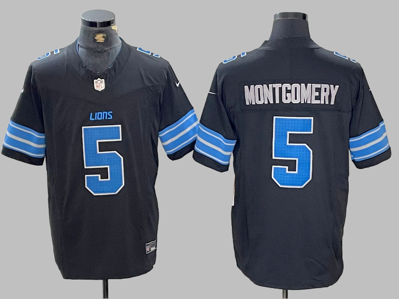 Men's Detroit Lions #5 David Montgomery Stitched Limited NFL Jersey Black