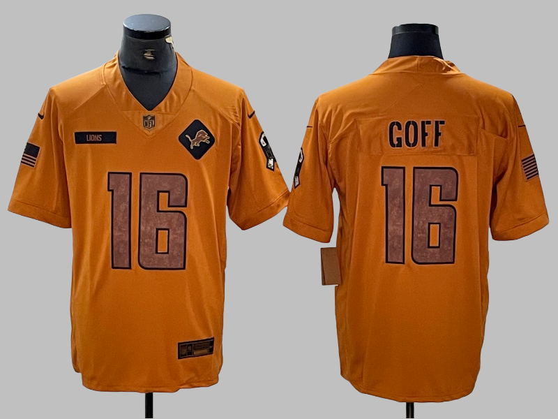 Men's Detroit Lions #16 Jared Goff Stitched Brown Salute To Service Limited NFL Jersey