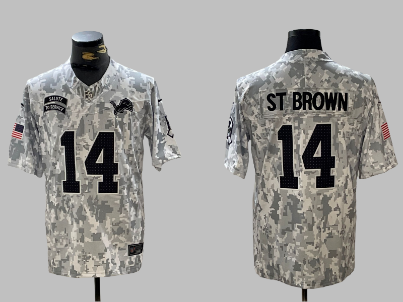 Men's Detroit Lions #14 Amon-Ra St. Brown Camo Salute To Service Limited NFL Jersey